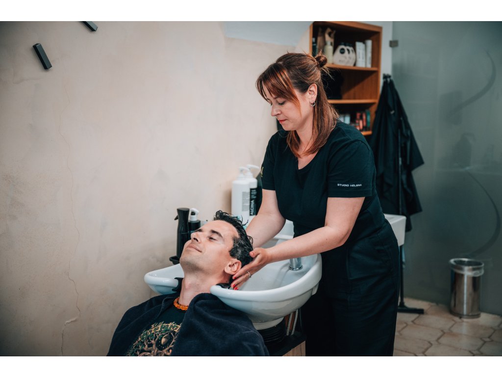Domluvíme se jaký styling a úpravu zvolíte doma a probereme i ideální produkty. Zažijete příjemné mytí, úžasnou masáž a čištění vlasové pokožky, pak vykouzlíme střih a upravíme vousy. Závěrečný styling nesmí chybět a k tomu všemu Vám nabídneme kávu nebo i pivečko.